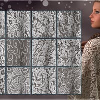 Made after real lace samples, scans, hand-drawn motifs, digital processing, making of seamless tiles and use of custom photoshop actions.