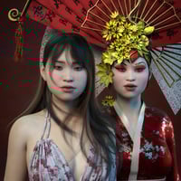 Aditi for Genesis 8 Female comes with 2 skin textures, and one is paler for her Geisha look and makeup.