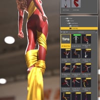 Aerial Silks Dance Poses for Victoria 9 includes 30 poses, Silks assets, 30 Silks morphs, and 6 color materials. Hook assets and 2 color materials.