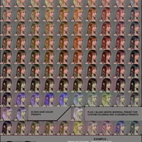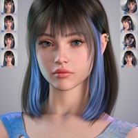 The hair includes 26 adjustment, 19 movement, 40 styling and 28 windy morphs, as well as 14 style shaping presets, 92 Iray hair material presets and 184 partial peek-a-boo presets. Additionally, a blank (off-white) Iray material preset allows for custom color creation by adjusting the base, translucency and top coat colors. 10 examples of custom color variations are included to help you experiment. (The blank material is not a merchant resource and it's only usable on this hairstyle)