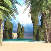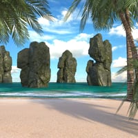 AP Tropical Rock Formations is a versatile modular environment set designed to bring the beauty of tropical coastlines into your 3D scenes. Perfect for crafting immersive beachside environments, this pack includes six unique rock formations, a cluster of palm trees, a sandy shoreline with realistic wave detail, and a sky backdrop prop for instant scene building.
