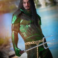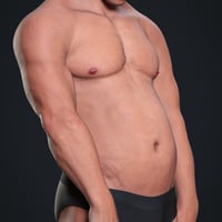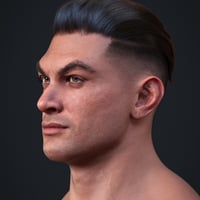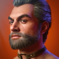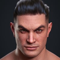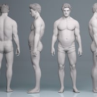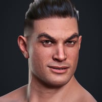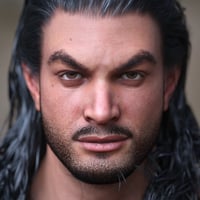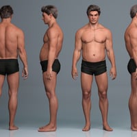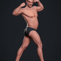 Aro comes with broad shoulders, a well-defined chest, and muscular arms and legs. While his upper body and limbs appear athletic and toned, his midsection is rounded and extended forward. He has a prominent, squared jawline with a wide, angular chin, broad, straight nose, and thick, dark custom eyebrows. He's the perfect everyman action hero, and a great, unique asset to use to blend into your other Genesis 9 figures.