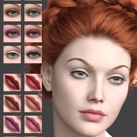 Irina or Genesis 9 includes face and body shape, head and body HD details, PBR materials, 8 L.I.E. lip colors, 10 L.I.E. makeup options, eye color, fibermesh eyebrows, and normal maps.