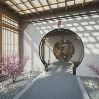 The moon gate stands as a circular opening in a wall, symbolizing the cyclical relationship between the sun and the moon. The sun, with its radiant energy, provides light and warmth during the day, while the moon, with its gentle glow, illuminates the night sky. The moon gate represents the harmony between these celestial bodies, each taking its turn to light up the world and guide us through the passage of time.