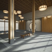 Aurinko is an environment which can lend itself to many scenarios. The moon gate aisle is a place where you can walk amongst the shadows and light. And the large interior hall could house lavish banquets or martial arts training.