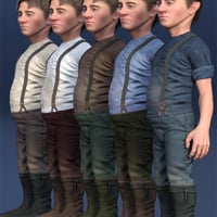 This set includes 3 textures for the boots, 10 textures for the pants, 10 textures for the short-sleeved shirt and 20 textures for the waistcoat.