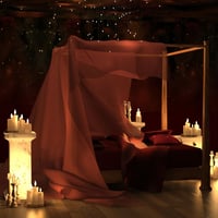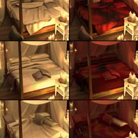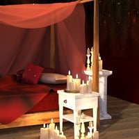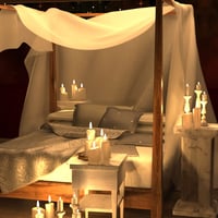 Bed Pod Romantic is a cozy, sexy pod with a variety of sheet and pillow configurations in common romantic colours of whites and reds.