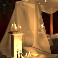 Candlelight and starlight mingle together to create a wonderfully sensual scene.