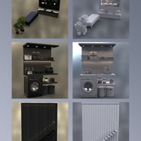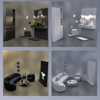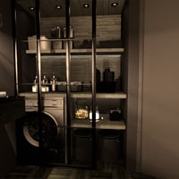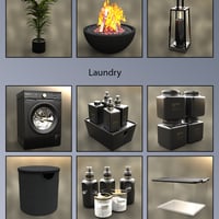 8 Scene presets are loading the whole set or just a part of it in place, and 46 zeroed props allow you to set up new scenes or different arrangements of the living room, the laundry, the toilet, or the firepit.