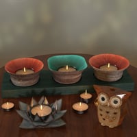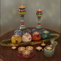 A set of ceramic candle holders, with two sets of bonus texture for Christmas holidays. Materials included for 3 Delight and Iray.