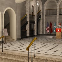 City Hall building interior with large open lobby, atrium and five stories of corridors, stairs and offices. Includes props. Ideal setting for renders of important people, political rallies, town meetings, going to see the mayor or even pay off those parking tickets! Every department in civic life has an office door, from Community Liaison to Police Commissioner, Emergency planning to Registrar of births deaths and marriages.