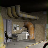 This set includes a purpose built control room, a large sweeping tunnel, two types of air shaft, elevator, moving doors, moveable bridge and consoles, lots of built in props and moveable water plane. In addition, many parts can be hidden for ease of use when creating your camera angles.