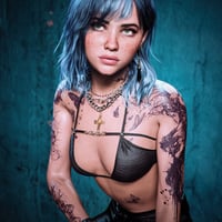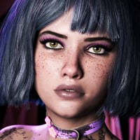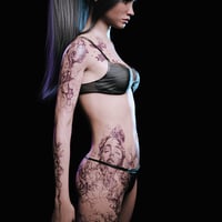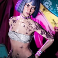Her skin is enhanced with ultra-fine 8K and 4K normal maps, and two styles of layered facial freckles. A bold tattoo design spans head and body, adding personality and edge. Her unique dual-color eye shader includes 12 preset looks, with two options for heterochromia. Complete the vision with 10 LIE makeup styles, fibermesh brows, and a wide range of lip and nail colors.