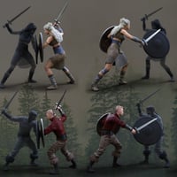 Included in this set are 24 Sword and Shield based combat poses (12 single and 12 dual poses) crafted in male and female versions, wearable hand Presets for the Sword and Shield props in the 'Viking Shield Kit for Genesis 8' for both Genesis 8 Female and Genesis 8 Male, 2 Sword Reverse/Forward grip Presets and also Lower and Upper Partial poses for mix and matching of each pose. Each Pose Preset also includes a 200x200 tooltip for easy viewing and selection.