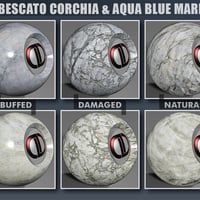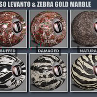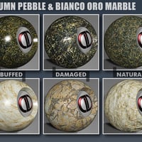 Each marble type is presented in 3 unique ways. Buffed Marble for opulent arch-viz projects to beautiful marble statues, and Damaged Marble for war-ravaged or ancient style renders. Plus there is Natural Marble, rough and textured for natural rocks and cliffs.