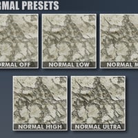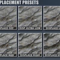 Changing the appearance of each preset is a breeze with the included Utilities folder, which contains a bunch of time-saving presets at your disposal. With 5 Roughness presets, 5 Normal strength presets, 6 Displacement Level presets, 4 Displacement SubD level presets, 19 Tiling presets and 10 Tiling Offset presets, you can quickly tweak the surface to your liking ... anything from polished kitchen benchtops to dilapidated and damaged statues, from wet natural marble to dry crumbling cliffs. Choose the look you want.