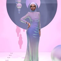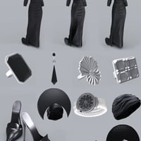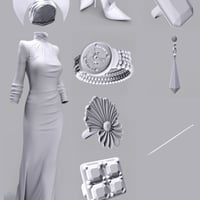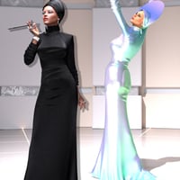 The dForce Black Long Dress Outfit for Genesis 8.1 Female is a bundle with a dress, high fashion hat, and delicate slippers. It also comes with rigged earrings, 3 different rings, and a cigarette holder.