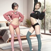 Introducing the dForce Cute and Cozy Outfit Bundle for Genesis 9, the perfect set for creating cute and cozy scenes, sensual and fun!