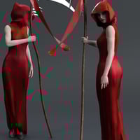 Bring the eternal elegance of Eternal Handmaiden to your images with this slim fitting sleeveless hooded robe, half boots and scythe Clothe your witches, reapers and ghouls in this slim elegant gown with half train and fully rigged skirt and hood. Included are five textures for all items.