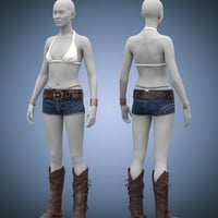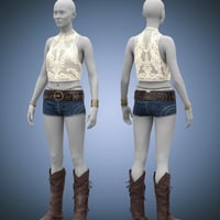 dForce Festival Vibes Outfit for Genesis 9 will have you ready for fun in the sun. With a bikini top, a small shirt, short shorts, boots, bracelets, and waist jewelry.
