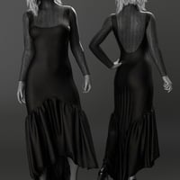 Ready for a fun night out? The dForce Flare Dress for Genesis 8 Females with its matching heels are a classic look. From the sleek, fitted bodice to the dramatic ruffle and chunky-heeled strappy shoes, this dress will make your character look like a glamorous star.