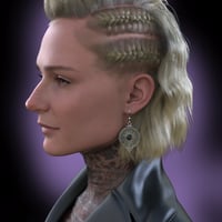 dForce Freydis Hair for Genesis 9 is a modern, edgy blend of traditional and futuristic influences, of a Viking-inspired faux hawk. Topped with a faux hawk, intricate side braids, and faded sides, this hair gives you the perfect look for your edgy character scenes.