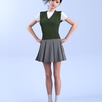 This product is a preppy style knit vest outfit. It consists of a vest, t-shirt, skirt, and sneakers. Thank you.