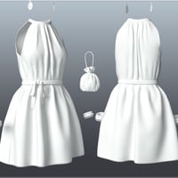 dForce Pure Class Outfit for Genesis 9 includes: Dress, Bag zeroed Left and Right, Earrings, Bangles L & R. 5 Full texture presets.