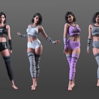 The dForce Urban Infinity Outfit for Genesis 9, 8.1 and 8 Females features a dForce Top, dForce Shorts, Arm Warmers, and Leg Warmers. Different textures are available as seen on promo images. The product is made for dForce, but it works great as conforming too.