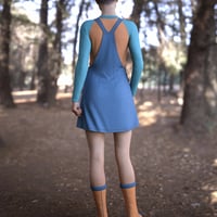 The dForce Winterberry Outfit consists of a Raglan long sleeve t-shirt, woolen knit tights, Denim Dungaree dress and matching sneaker boots, in bright winter warming colors.