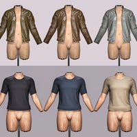 It includes a Leather jacket and a T-shirt, all featuring realistic details and textures.