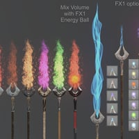 This expansion helps Diabolo the demon hunter to fulfill his magic with the help of a magic staff. With this staff, you can create fire or an energy ball to effectively use against demons and other evil creatures. The Staff has 2 different effect styles you can hide/show with included properties preset or using the FX Switch button. Also included is a volume VDB effect. Select the Staff and load the volume, it will hide both base effects, however, you can get interesting results if you use one of the base effects, like the energy ball with the volume (see promo images for samples).