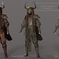 The included Blood and Dirt Layer Geometry Shells can be useful in some situations when things get loose. Load the full outfit with the selected Blood, Dirt, or even Dirt AND Blood layer. You can use them with other outfit textures. For chainmail vest and belt cloth, all needed presets are included.