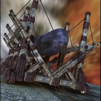 Introducing an impressive battering ram that will give any castle's gates a serious pounding. Fully jointed to give forward movement with 16 rotating wheels. Four easy pose ropes trail at the rear to be used by the DAZ Troll or any other formidable warrior. The battering ram is detailed with textures of wood and iron and comes in two versions, one with chains and the other ropes. The latter being a little less in terms of the polygon count.