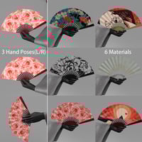 Some poses require a fan. Please load the fan into the character according to the file name. For example, 'MK 09 FanLH Dance' means a fan for the left hand is required. Select the character, go to Props--Aurora--Mini kimono Props folder, double-click 'MK Fan LH', and after the fan is loaded, double-click 'MK 09 FanLH Dance'.