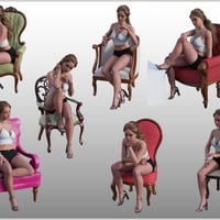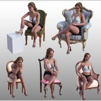 A set of poses to complement FG Fancy Chair adjusted for Genesis 9 Feminine with 20 anywhere poses.