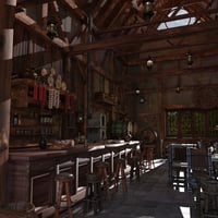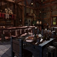 In the heart of a bustling medieval village, nestled between cobblestone streets and timber-framed buildings, lies a warm and inviting tavern.