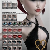 This character package is based on Fiends Forever for Genesis 2 Female(s) and comes with stylistic textures, makeups and morphs. Bloodile's brand new makeup and eyebrows options can be used with any skin color from the original Fiends Forever base package.