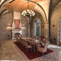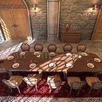 Host your next render in majestic style with the Fortress Dining Room, a medieval-inspired interior for DAZ Studio.