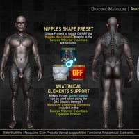 An alternative Feminine Skin Preset supports the Female Anatomical Elements, and the alternative Masculine Skin Preset supports the Male Anatomical Elements. These geografted Anatomical Elements are included in the Genesis 9 Starter Essential Expansion Products (sold separately).