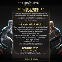 Transform your characters into a mutant with our "FPE Tentacle Arms for Genesis 9". This set includes two Geografts that replace your character's Left and/or Right Arms with tentacles. Three sets of Geoshell Wearables (Left Arm Only, Right Arm Only, and Both Arms) ensure a smooth and stylish transition between your character and the attachments. Octopus eyes are also included to complete the look!