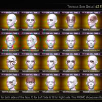 Our Geoshell skin system includes 43 transition options -14 for the right tentacle, 14 for the left tentacle, and 15 for when using both tentacles. You'll also find 42 LIE face transition presets to add further details.