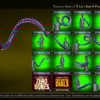If posing is not your forte, the tentacles include a comprehensive control rig (as shown in the promos) with various dials to help you pose them from within the Parameters Tab. If that's not enough, to help you get started, we included 43 hierarchical partial poses that cover a wide range of positions, which you can mix and match with other Genesis 9 poses.