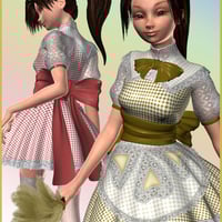 Freshly Maid, a set of farm-fresh ginghams for Aiko Maid. The crisp red of tart apples, the clean feel of grass green, the dappled light of sunshine yellow and the beauty of simple cornflower blue grace these sweet outfits for a maid who's down on the farm or ready for her duties at the Manor.