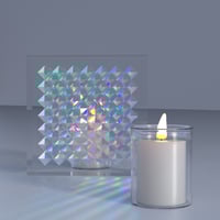 The set also includes a simple votive candle that can be placed behind the sculptures for a romantic touch.