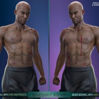 Three Materials Presets for each Geoshell have been included (light, mid-tone, and dark skin). Since the LIE is built on these Geoshells, the time it takes to load is substantially reduced. If you find the blood too glossy, we have also included a preset to lower that. Though since this is built on a Geoshell, you can always change the settings to whatever works best for you without messing with your character's skin.