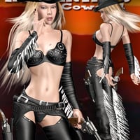 Hi-Fantasy - Cowgirl outfit consists of high quality mesh models with dynamic morphs. These morphs provide advanced movement morphs to conform realistically with the character movements. All accessories that complete these outfit are easy to use. This pack includes complete fantasy cowgirl outfit, smart props, hair, and hand files.