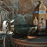 Hill Side Villa has several charming details typical for Mediterranean environment – Brass Lanterns, Terracotta Olive Oil Jars, Vintage Iron Chair, Carved Coffee Table, Bouganvillea Trees, Cypres Tree, Palm and Fruit Bowl.