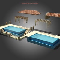 Product is designed for middle scale architectural structures in vignette style, ideal for human scale renders. It has 5 base Hill Side Villa Blocks Presets and Starter Presets for Infinite Pool Terrace, Roof and Boho Style Sun Shade.
