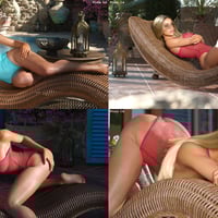Wicker Poolside Sun Bed and Poses for Genesis 9, 8 and 8.1 Female has 20 Full Body Pose Presets with Wicker Poolside Sun Bed for Genesis 9, 8 and 8.1 Females.